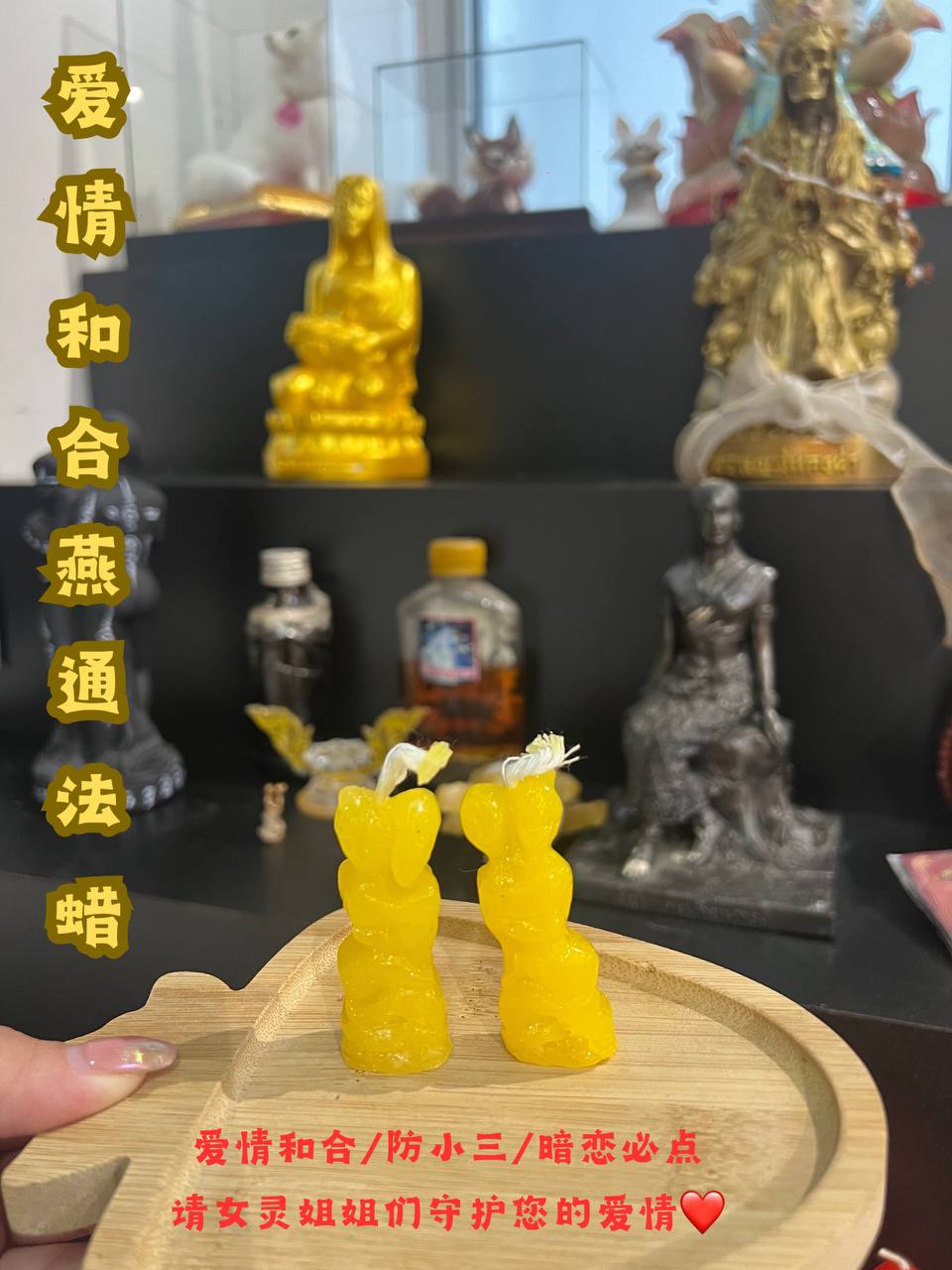 燕通蜡烛是一项小法事,能使另一半对自己忠诚,促进双方感情和睦(挽回感情、增进夫妻关系),维护稳定双方感情,减少情侣外遇变心问题。而如是单身的朋友则增强自身爱情运势、旺桃花(燕通只招正桃花)容易得到异性垂青。燕通和合蜡烛,求姻缘促和合祈福求子。如果你正在寻找一尊促进与爱人感情并维护感情的牌,那燕通无疑将会成为你的首要之选。以燕通神为法相的燕通蜡烛,写上二人姓名生日在晚上点燃,可促进佩戴夫妻的感情和睦、促进恋爱、造就魅力、增强爱人对自己的忠诚。如果你正处于爱情中,那燕通会是你守护感情不错的一个选择,报名的速度❗